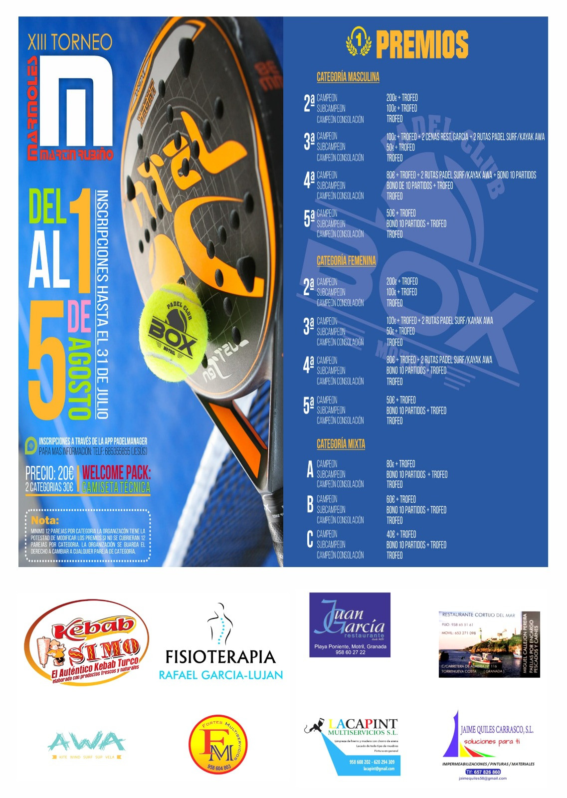 III TORNEO ANIVERSARIO BOX PADEL MOTRIL
