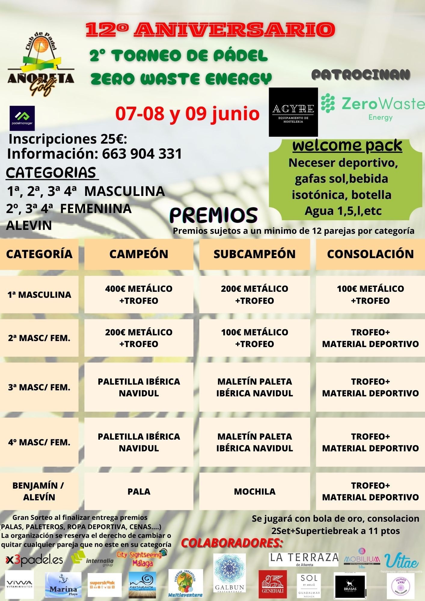 12º ANIVERSARIO PÁDEL AÑORETA/ 2º TORNEO DE PÁDEL ZERO WASTE ENERGY