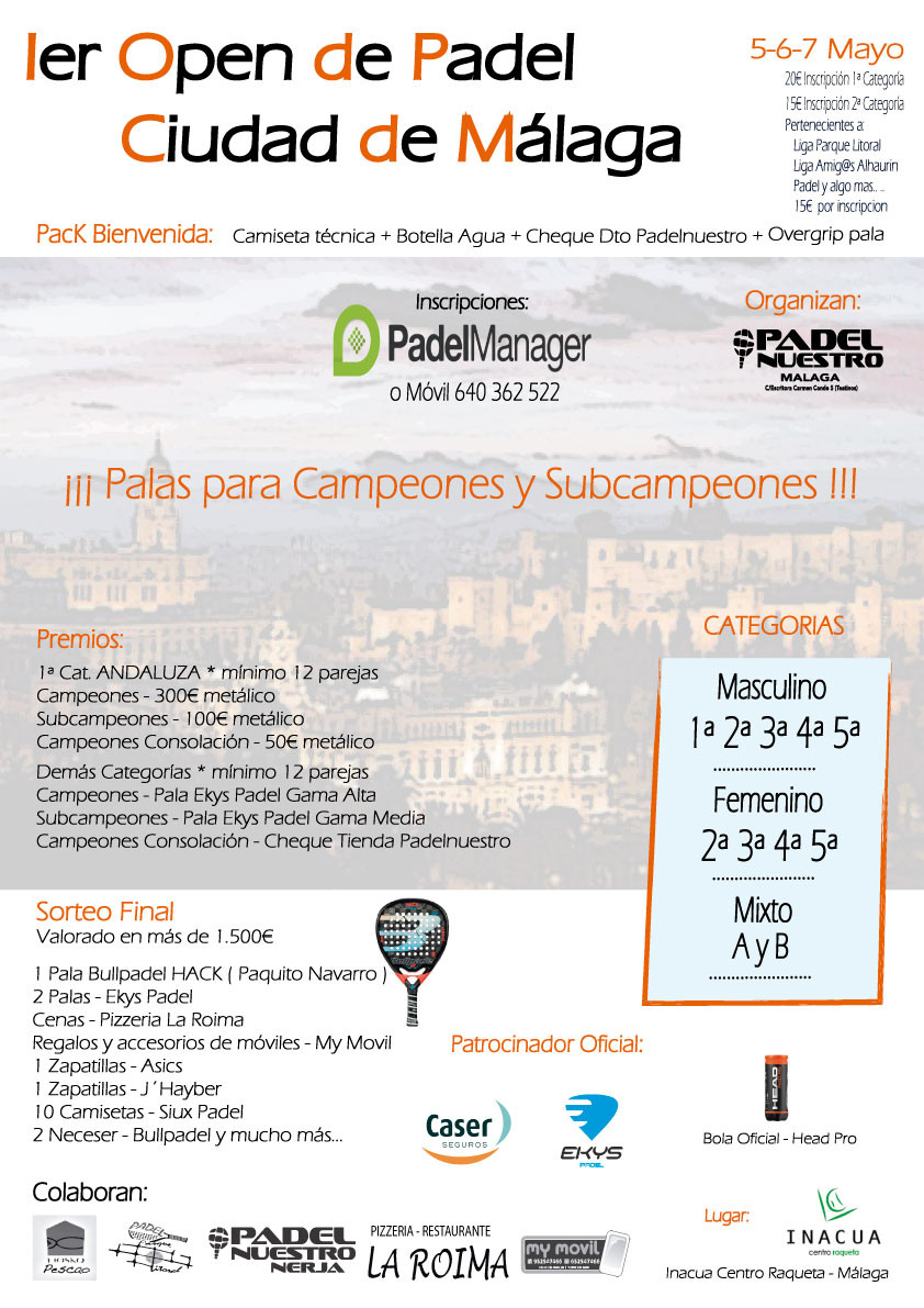INACUA Centro Raqueta Ier Open Ciudad de Málaga 6-7 Mayo