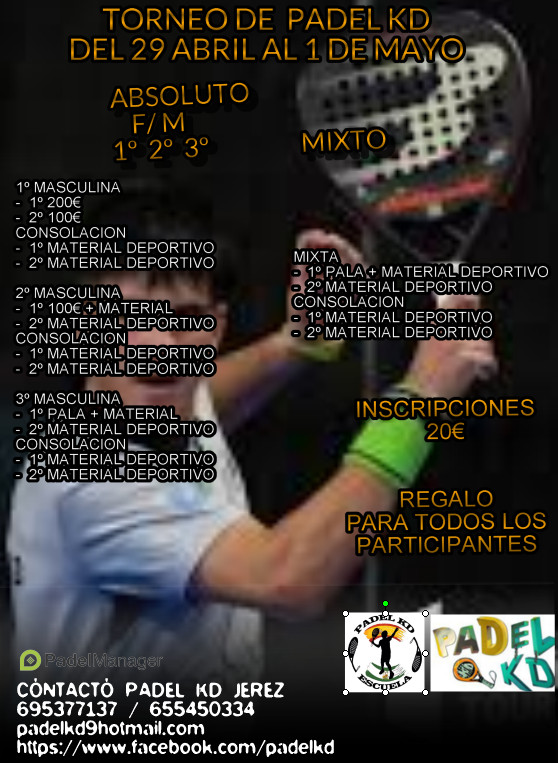 TORNEO PADEL KD DEL 29 ABRIL AL 1 DE MAYO